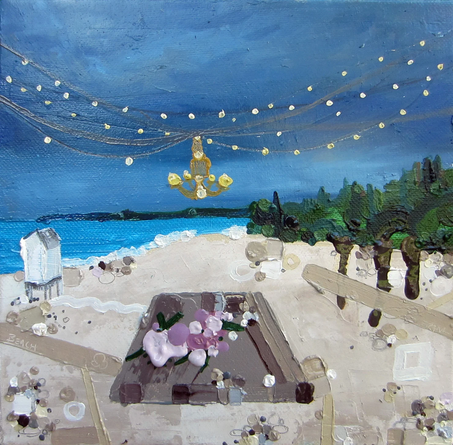 Siesta Key, 2016, Oil and Mixed Media on canvas, 24 x 24 inches
