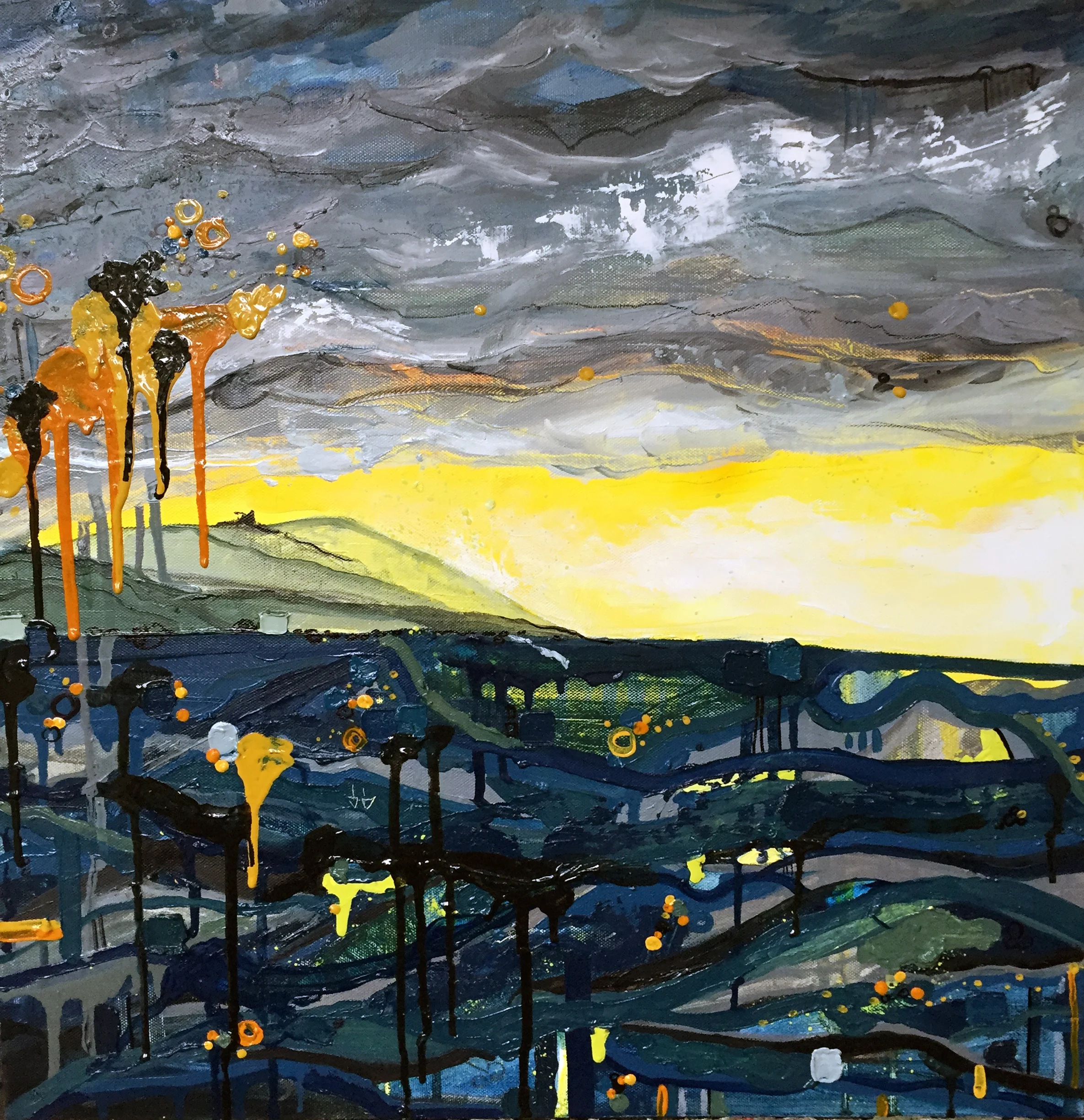 Cloudy with a Chance of Optimism, 2015, Oil and Mixed Media on canvas, 20x20"