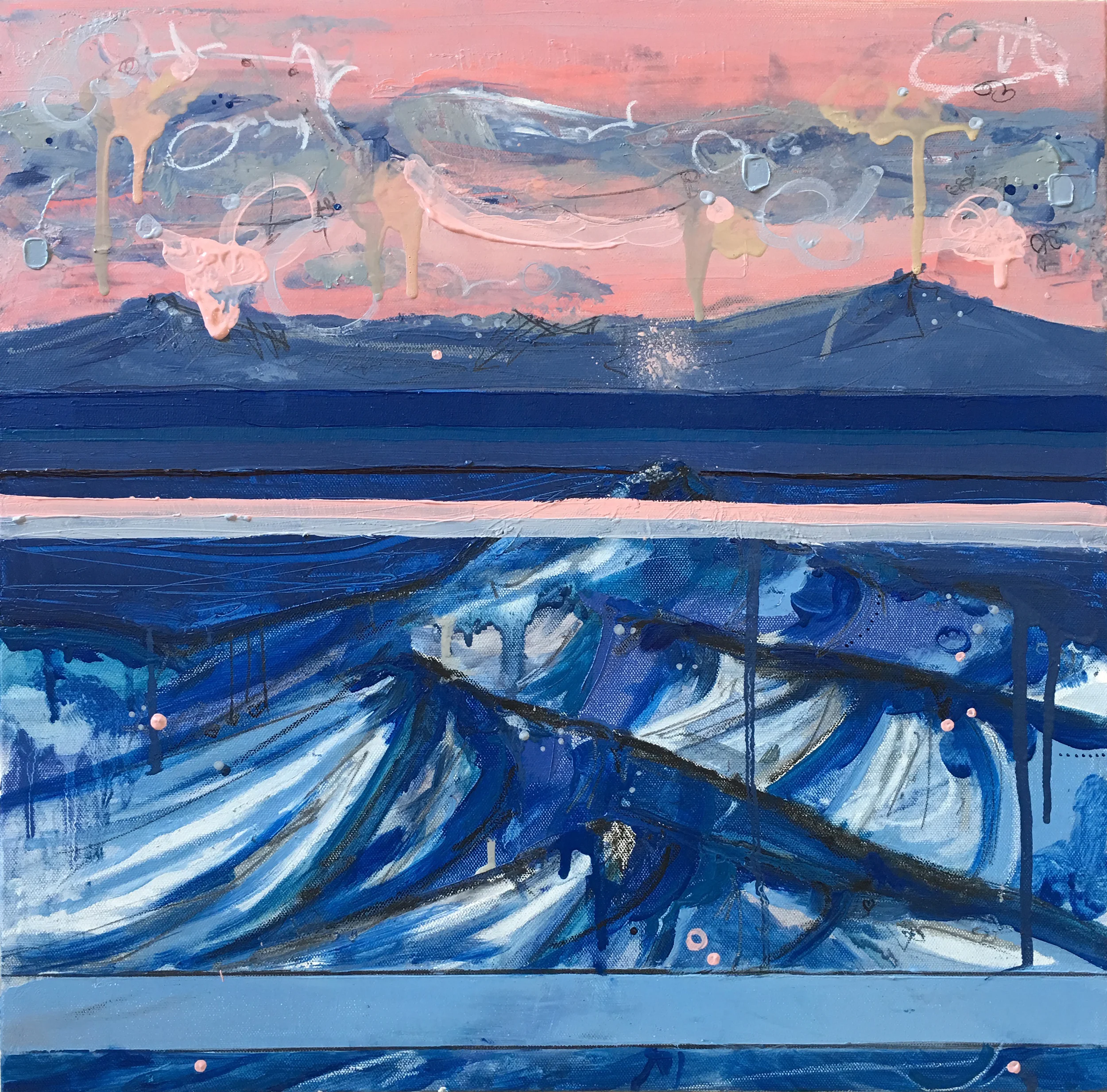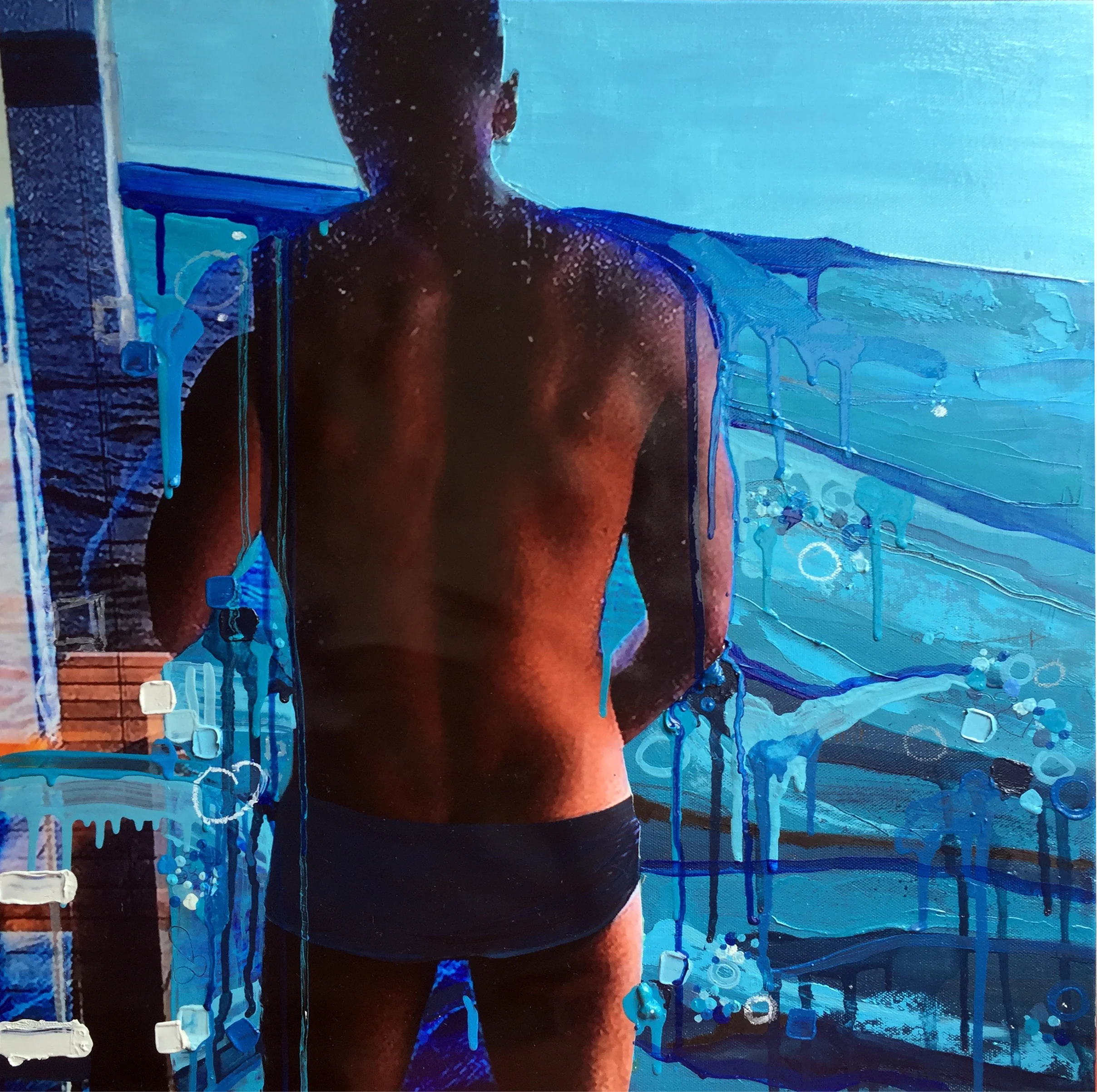 Deep Blue Sea, 2016, Oil and Mixed Media on canvas, 20 x 20 inches